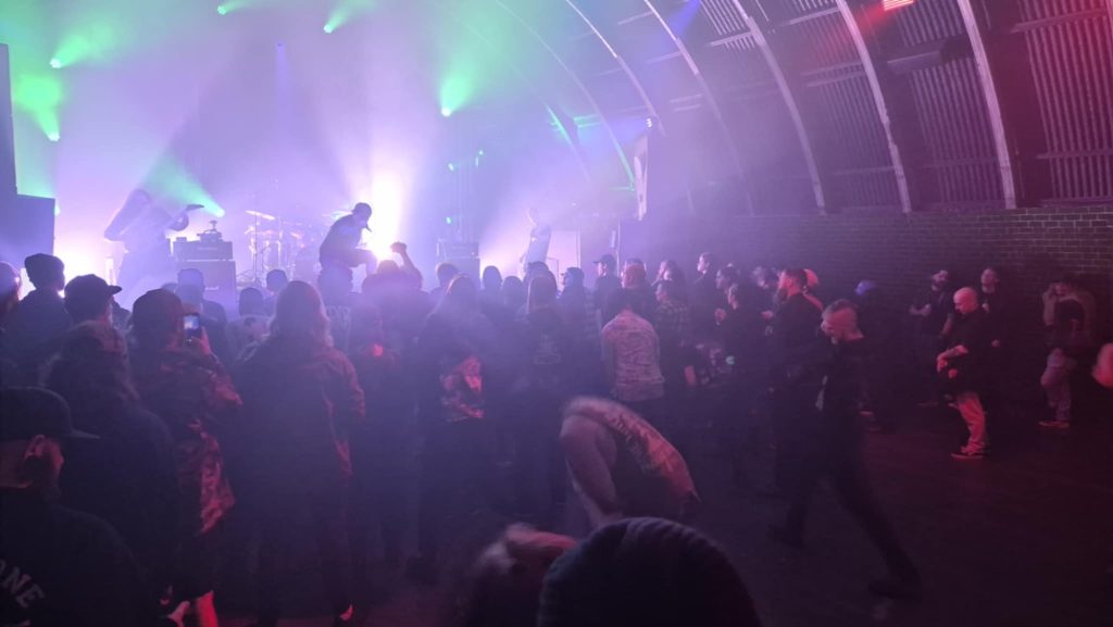 “When I got there around 8 PM, the venue was already packed despite the weather.” I scribbled into my phone between sets. “Luckily, it’s indoors though honestly, it feels like a bunker. My friend Lindon told me this stage used to be an old Army hangar during World War II, which is sick. Same place I saw Cattle Decapitation once, so I knew it was gonna sound amazing.”