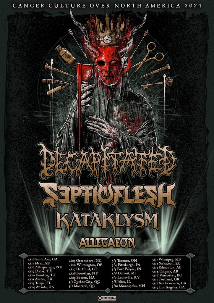 Next month, ALLEGAEON will hit the road with Decapitated, Septicflesh, and Kataklysmfor the Cancer Culture Over North America Tour 2024. The tour runs from April 16th through May 19th. Tickets are on sale now. See all confirmed dates below.
