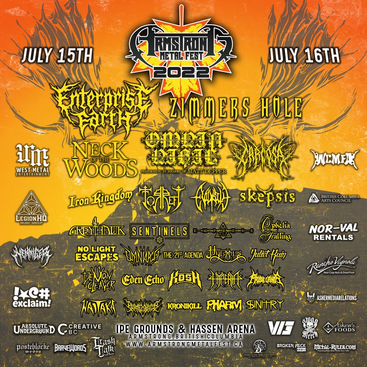 Since 2009 (minus pause years 2020 and 2021 due to the Covid pandemic), West Metal Entertainment and Armstrong Metalfest have not only fostered the talent of hundreds of local bands, but have imported well-known, international acts to the quiet, little Canadian town of Armstrong, British Columbia.