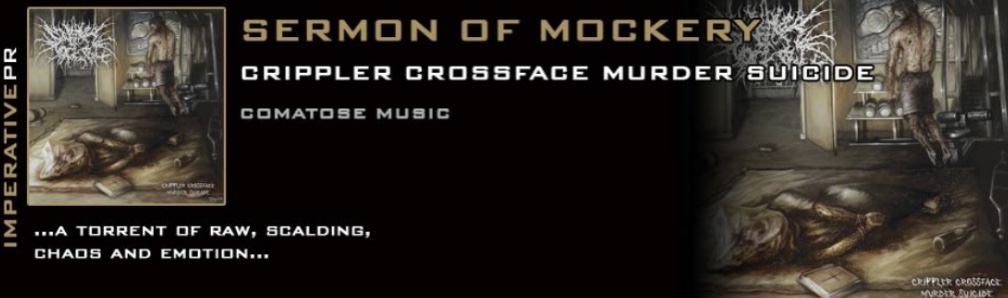 Once Comatose Music had unearthed the bloodstained treasure of Sermon Of Mockery in their endless explorations of the deepest catacombs of extremity, it was only a matter of time before Crippler Crossface Murder Suicide would be unleashed. The date of your destruction has now been decreed – on October 7th Sermon of Mockery will launch their attack, sinking their jagged, broken teeth into your quailing, defenceless sanity
