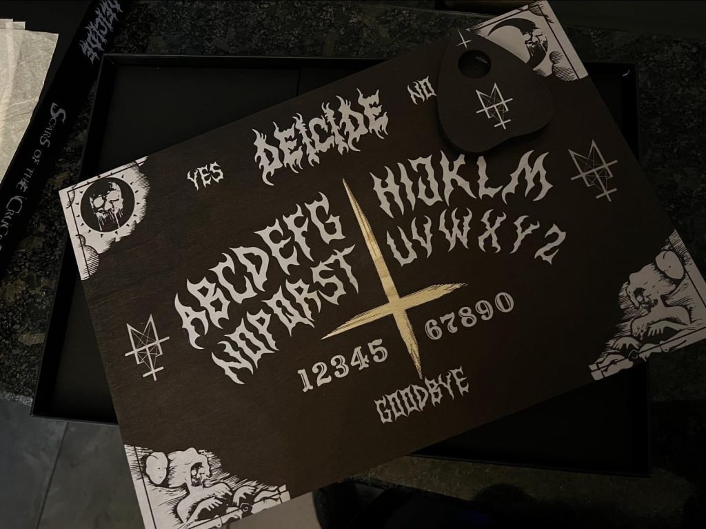 Deicide has a new Ouijia Board which is a very interesting piece of collectible band merchandise perfect for the beginning of fall and spooky season. Its a Scars Of The Crucifix-themed Ouijia board named after the band’s 2004 album of the same name and was produced in collaboration with frontman Glen Benton, a man who, lest we forget, once burned an inverted cross into his own forehead. So he’s well qualified for this sort of thing.