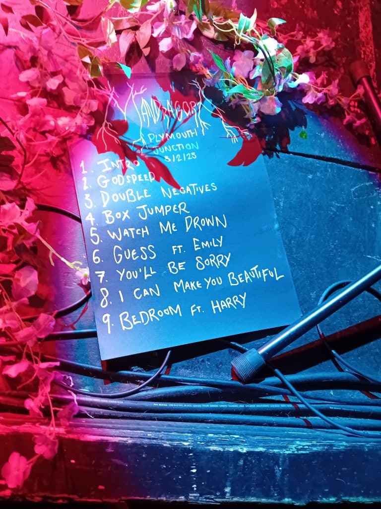 After launching into an impromptu rendition of Happy Birthday for a member of the crowd, it was time for the last song of the setlist, for which another special guest was summoned to the stage. The guest this time was identified as Harry, who duetted with Waterhouse on Bedroom, a maelstrom of thrashing guitars and pounding drums in its intro, before settling into a rapped verse from Waterhouse and guttural vocals from Harry. The audience were beckoned to crouch down for the quiet part in the middle, before springing up and going absolutely ballistic for the big breakdown at the end, with Waterhouse leaping into the mosh pit, leaving Harry and the rest of the band to bring the set to a close.