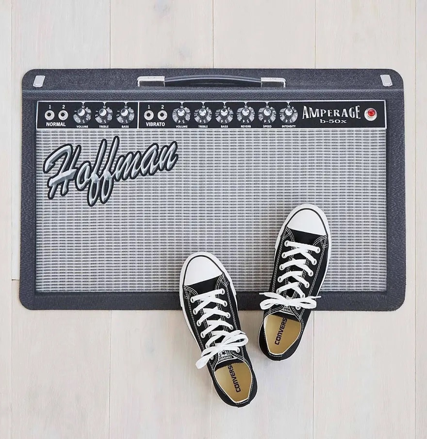 Welcome guests to your home with the power chord appeal of this personalized amp doormat. Designed by graphic artist Jim Holodak, it’s personalized with your family name in place of an iconic, rock-solid brand name like Fender. Best used indoors, wherever you like to turn it up to 11, $35.00 At Uncommon Goods