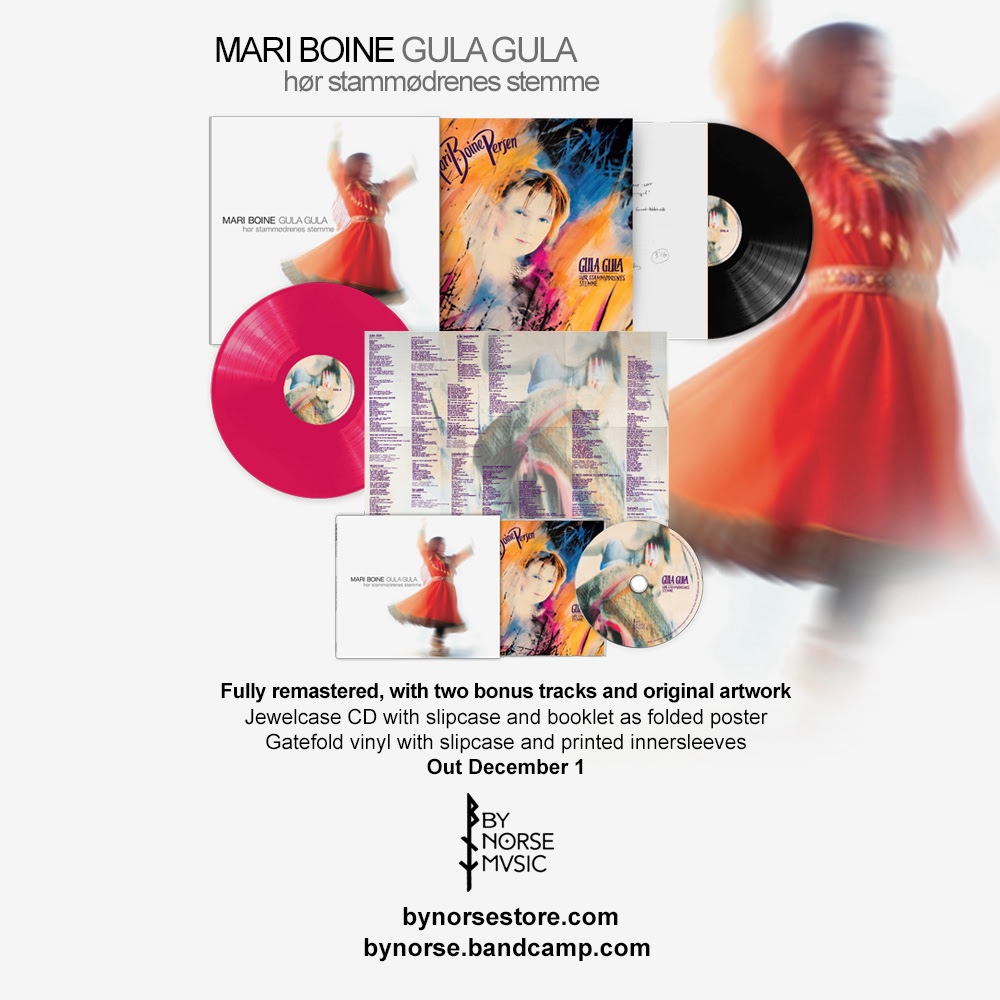 By Norse will be reissuing Mari Boine’s iconic album Gula Gula. Originally, Gula Gula -Hør Stammødrenes Stemme (translated: Hear the voices of the Foremothers) was released on the label that the Norwegian singer founded with her former husband. The album was then discovered by Peter Gabriel and released worldwide on his label Real World Records, introducing the folk artist to international audiences, who welcomed her with open arms. Mari Boine won her first Spellemannprisen (Norwegian Grammy Award) in 1989 with this record.