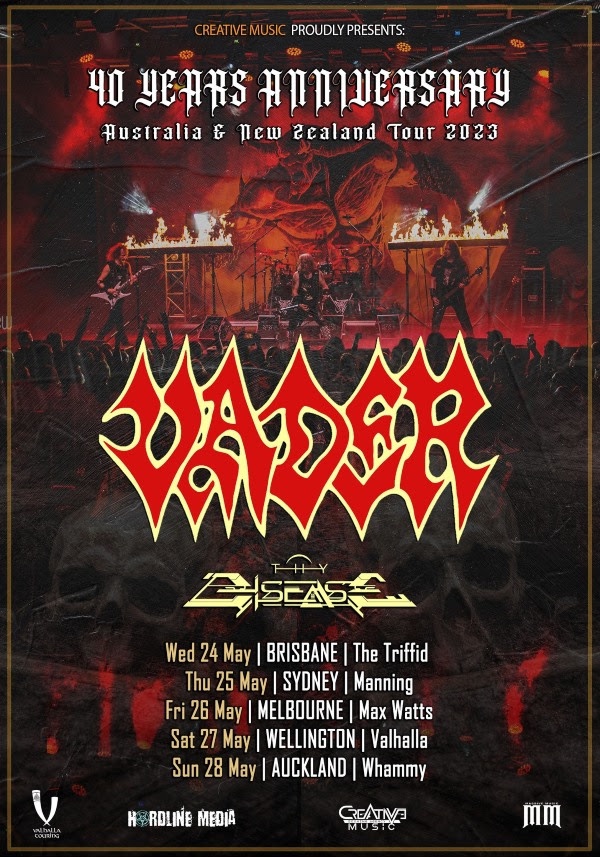 The VADER tour in Australia and New Zealand confirmed for November 2022, was forced to be rescheduled for May 2023, due to logistical issues. Supporting act on the tour is THY DISEASE.