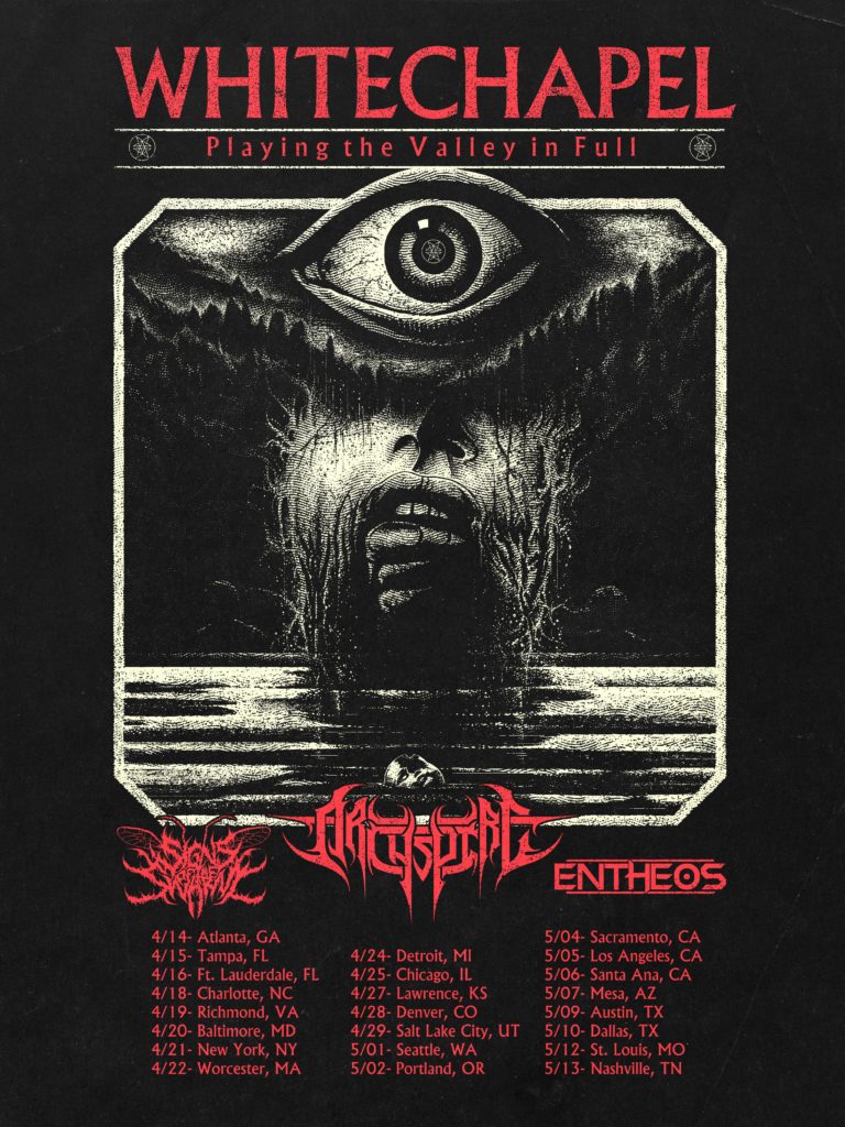WHITECHAPEL will embark on a US headlining tour this Spring where the band will perform their critically lauded 2019 full-length, The Valley, in its entirety! The special month-long trek begins on April 14th in Atlanta, Georgia and runs through May 13th in Nashville, Tennessee. Support will be provided by Archspire, Signs Of The Swarm, and labelmates, Entheos.